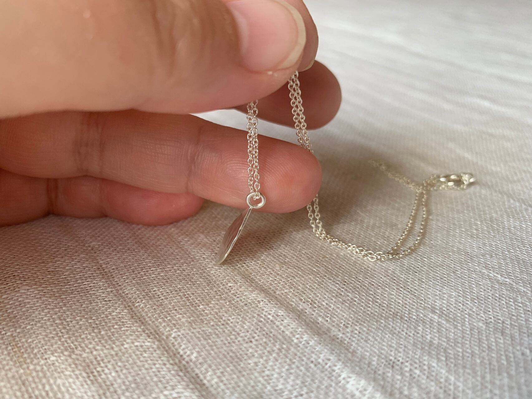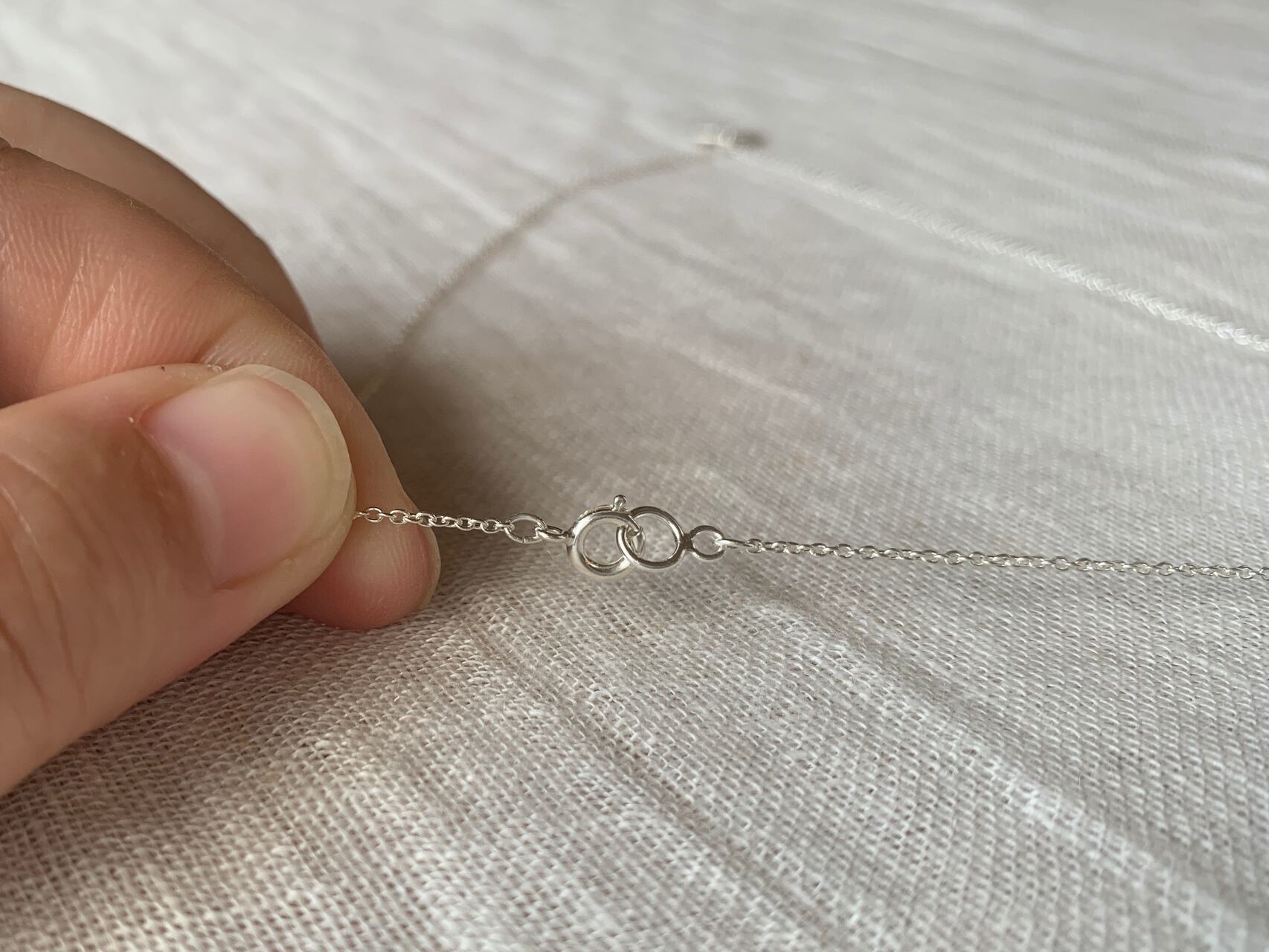 チェーンは細めで標準的な40㎝なので、襟ぐりによっては素肌の上にも着けやすいサイズ感です。